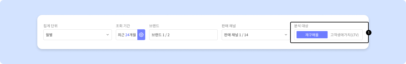 3. 분석 종류를 선택해 주세요(재구매율은 구매 확률, 고객생애가치는 평균 누적 금액을 의미)